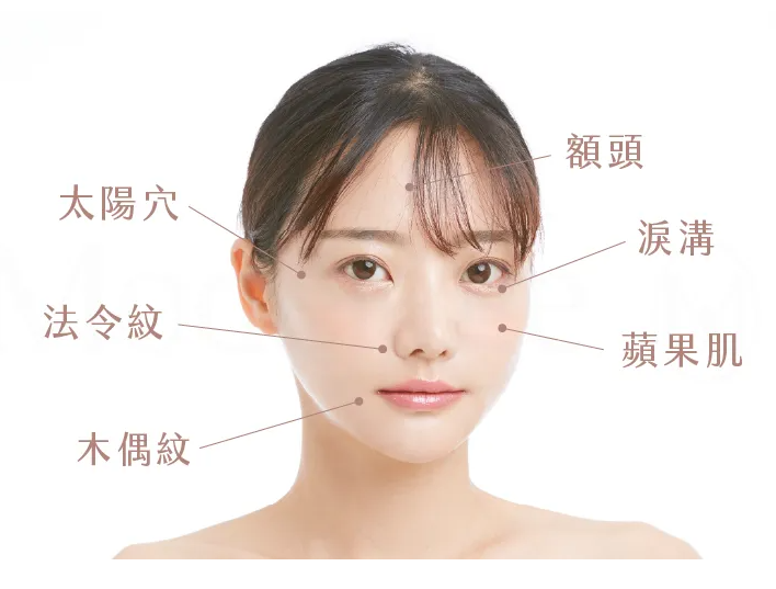 皮膚最高再生科技「仿生胜肽」份子細小,接近皮膚結構,更易被皮膚吸收,親膚度極高。透過透明質酸為媒介,胜肽嫩膚養份被吸收並刺激真皮層,改善因光導致的老化及皺紋,同時分佈平均,無結節,無需按摩,填充於無形,效果極為自然,長效12個月以上。